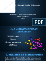 Las biomoléculas: carbohidratos, proteínas, ácidos nucleicos y lípidos son moléculas orgánicas en-