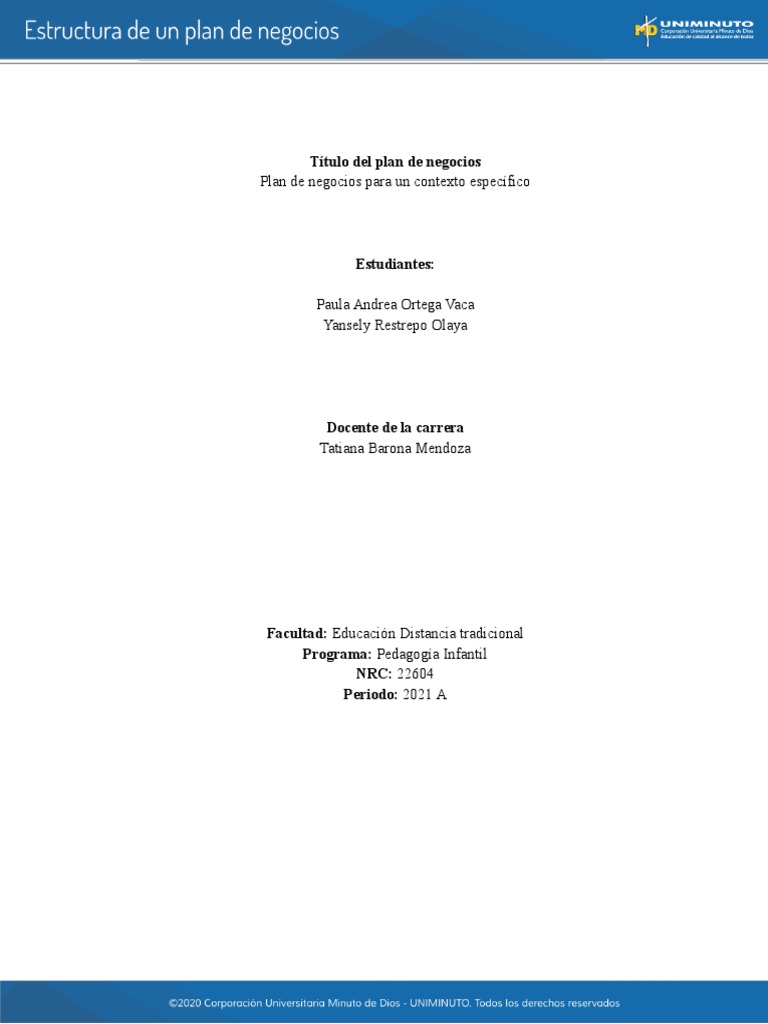 Plan de negocios para un contexto específico