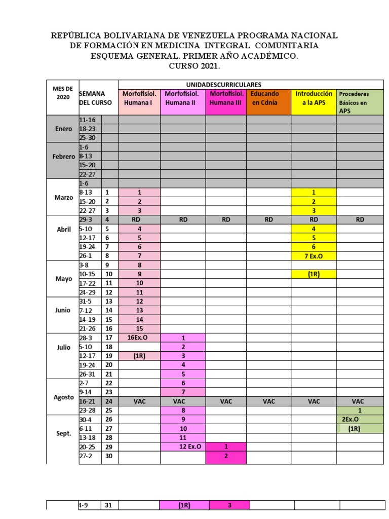 Inicio: Semana 1 del curso 2021 (8 al 13 de marzo) con la semana 1