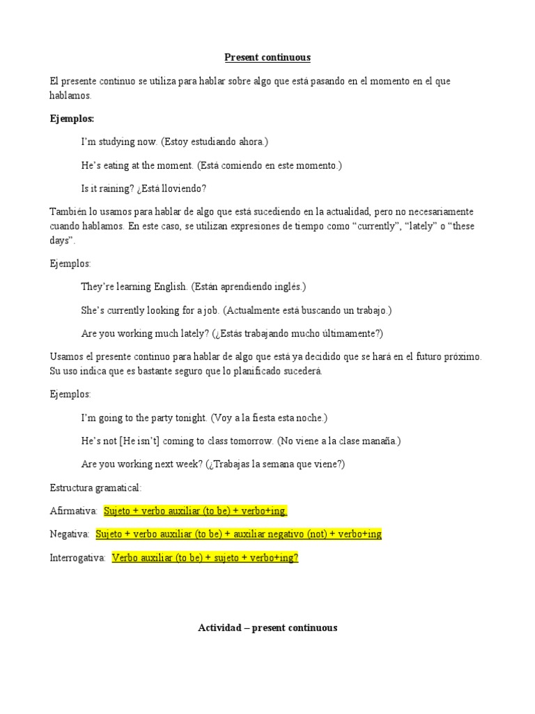 Actividad – present continuous
