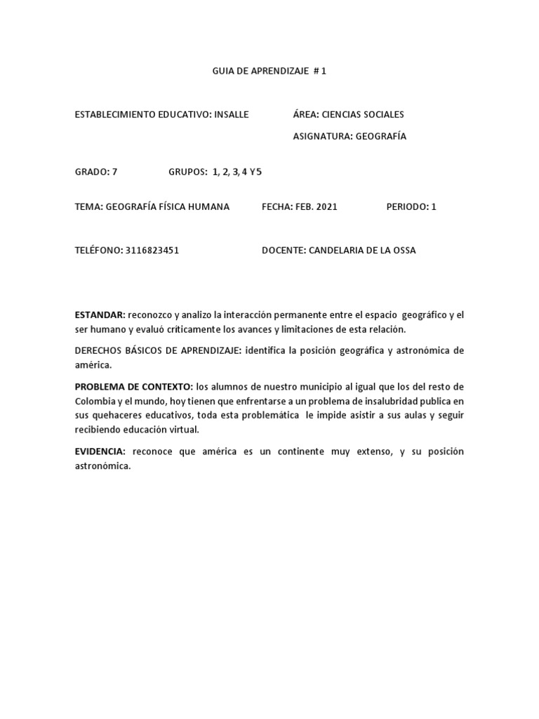 TEMA: GEOGRAFÍA FÍSICA HUMANA FECHA: FEB. 2021 PERIODO: 1