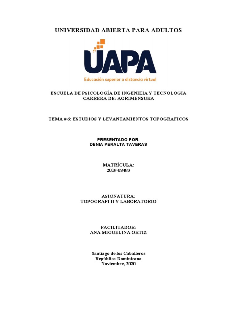 TEMA # 6: ESTUDIOS Y LEVANTAMIENTOS TOPOGRAFICOS