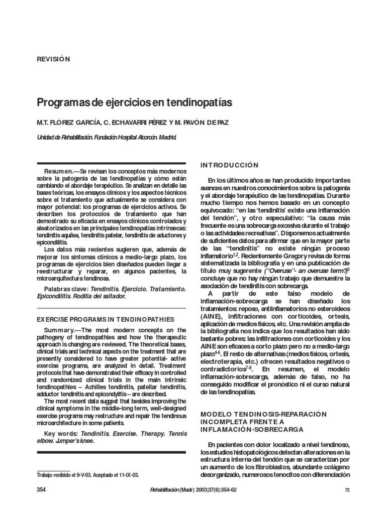 Palabras clave: Tendinitis. Ejercicio. Tratamiento. asociación de tendinitis con sobrecarga.