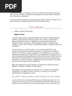 c) Las diferentes regiones folclóricas de Colombia, trajes y comidas.
