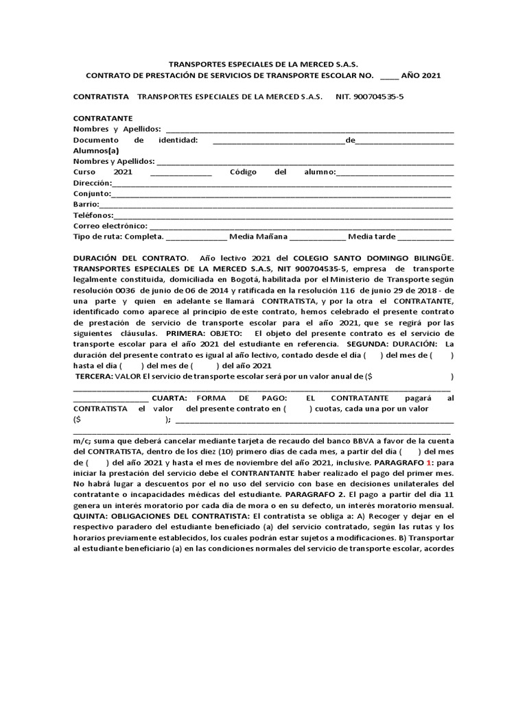 estén relacionados con la prestación del servicio de transporte escolar contratado. Así mismo,