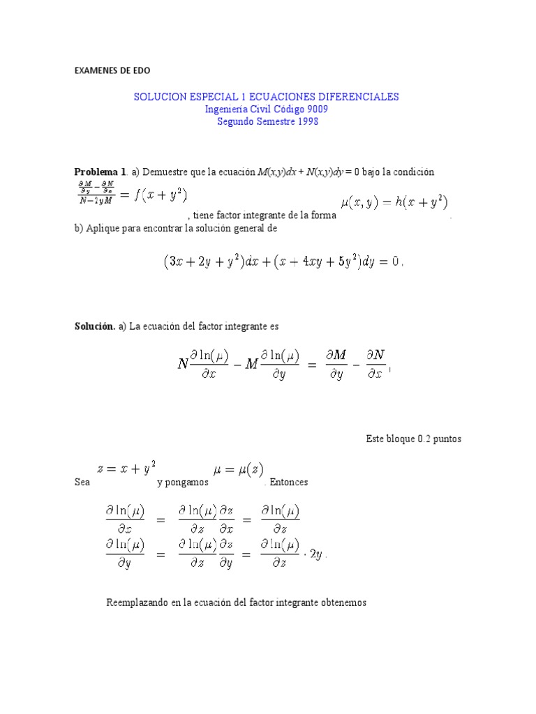 SOLUCION ESPECIAL 1 ECUACIONES DIFERENCIALES