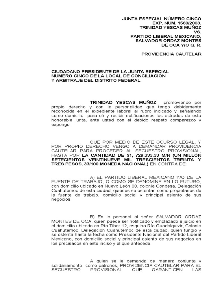 solidariamente como patrones, PROVIDENCIA CAUTELAR PARA EL