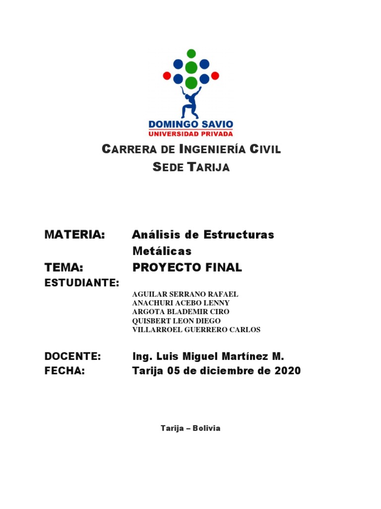 PROYECTO SOCIOFORMATIVO ANÁLISIS DE ESTRUCTURAS METÁLICAS