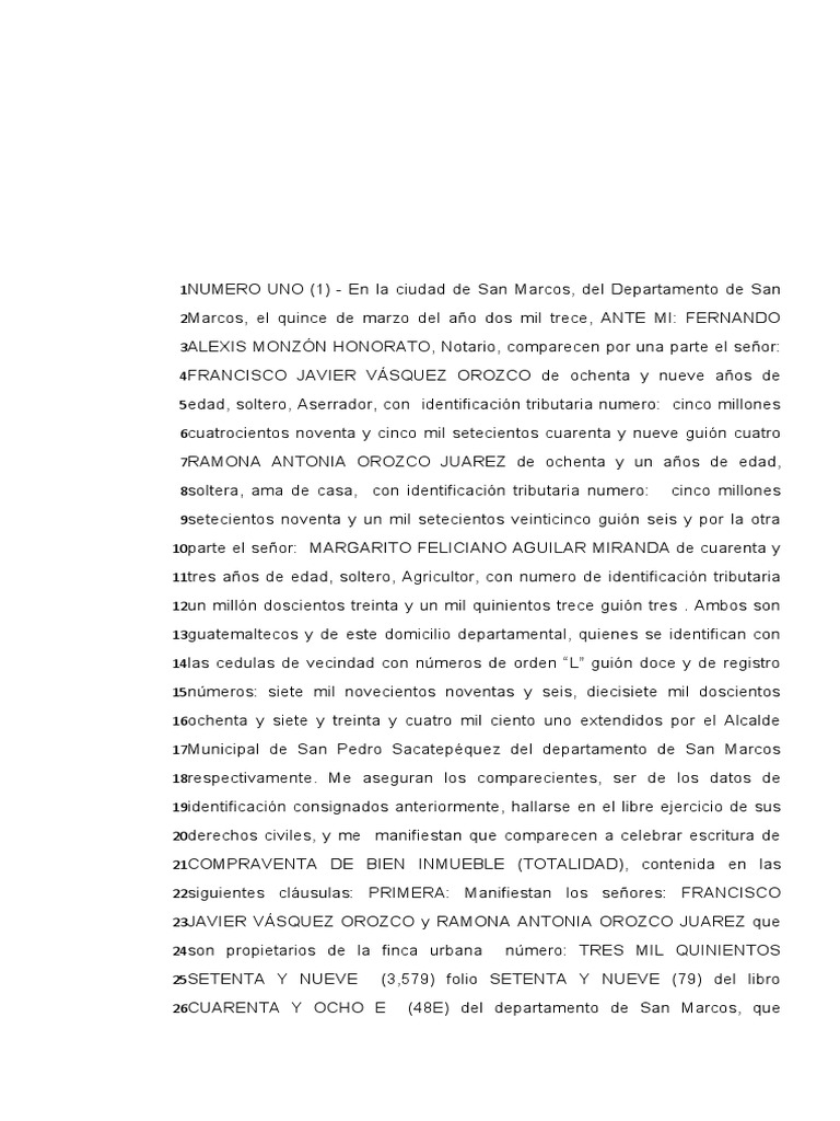 1NUMERO UNO (1) - En la ciudad de San Marcos, del Departamento de San