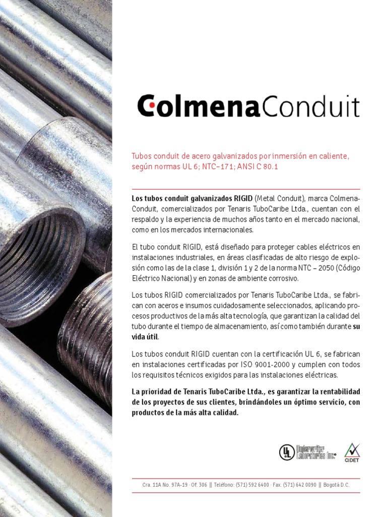 Los tubos conduit galvanizados RIGID (Metal Conduit), marca Colmena-