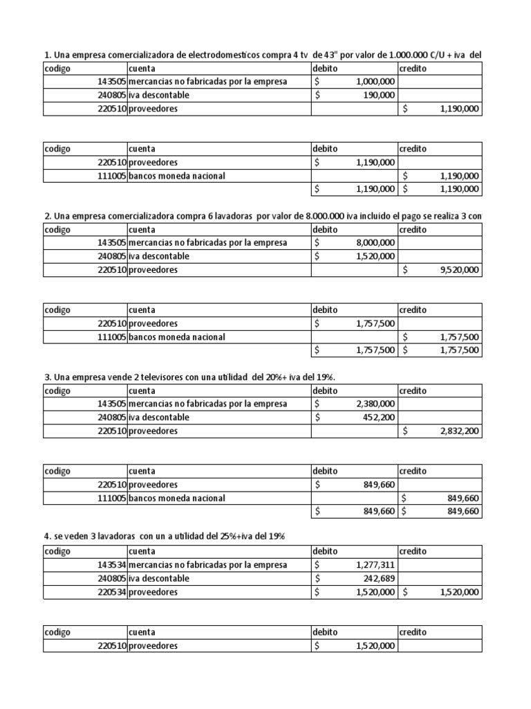 2. Una empresa comercializadora compra 6 lavadoras por valor de 8.000.000 iva incluido el pago se realiza 3 contados.