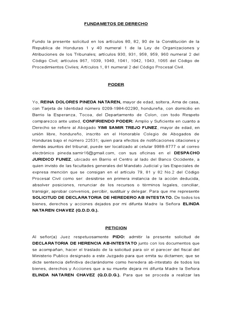 solicito al Honorable Juzgado se me declare HEREDERA AB-INTESTATO de