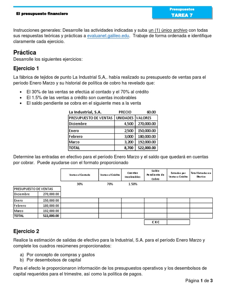 Realice la estimación de salidas de efectivo para la Industrial, S.A. para el período Enero Marzo y