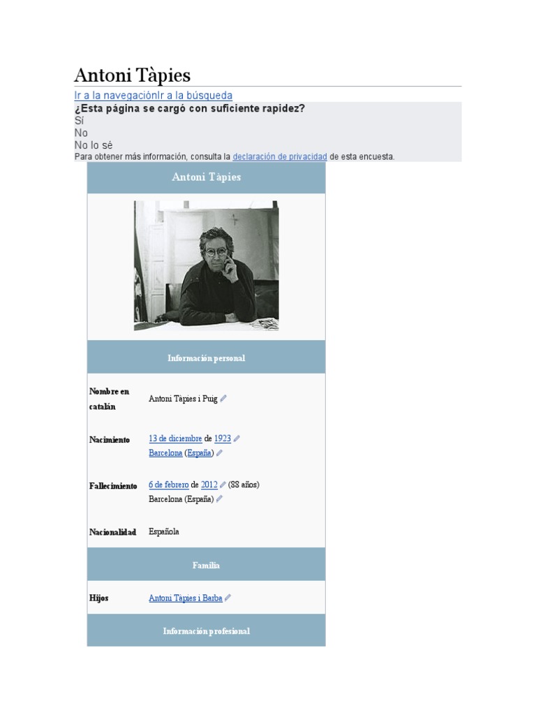 23. ↑ «Antoni Tàpies». Archivado desde el original el 29 de diciembre de 2008. Consultado