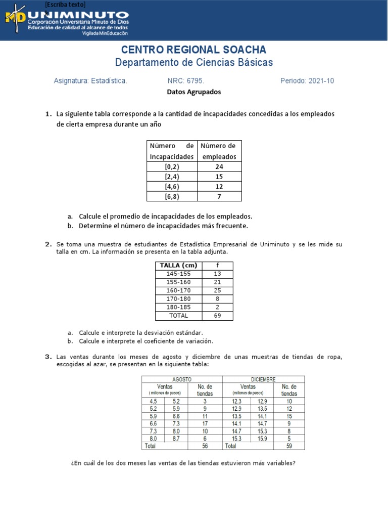Asignatura: Estadística. NRC: 6795. Periodo: 2021-10