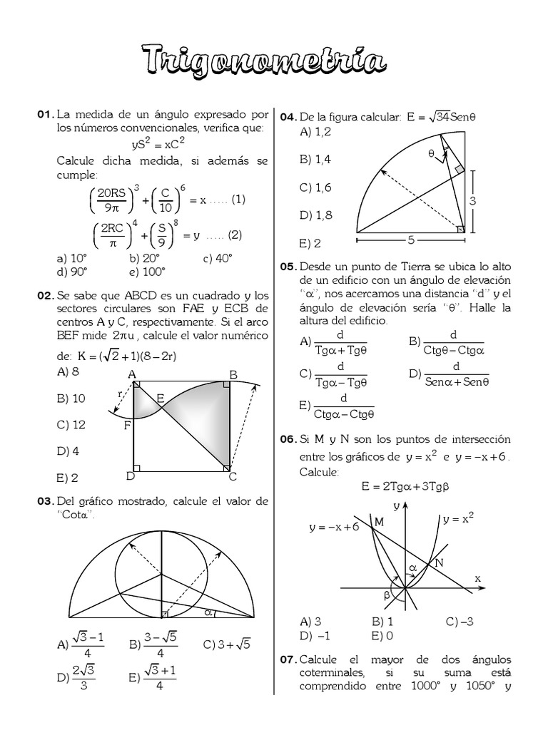 d) 90° e) 100° 05. Desde un punto de Tierra se ubica lo alto