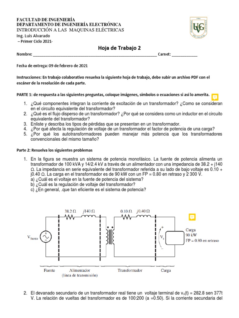 1. ¿Qué componentes integran la corriente de excitación de un transformador? ¿Como se consideran