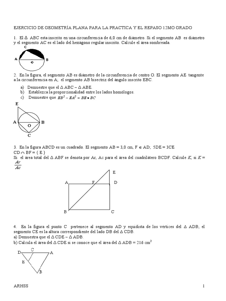 EJERCICIO DE GEOMETRÍA PLANA PARA LA PRACTICA Y EL REPASO 12MO GRADO