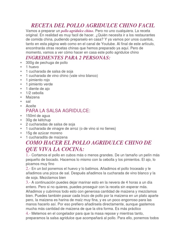 RECETA DEL POLLO AGRIDULCE CHINO FACIL