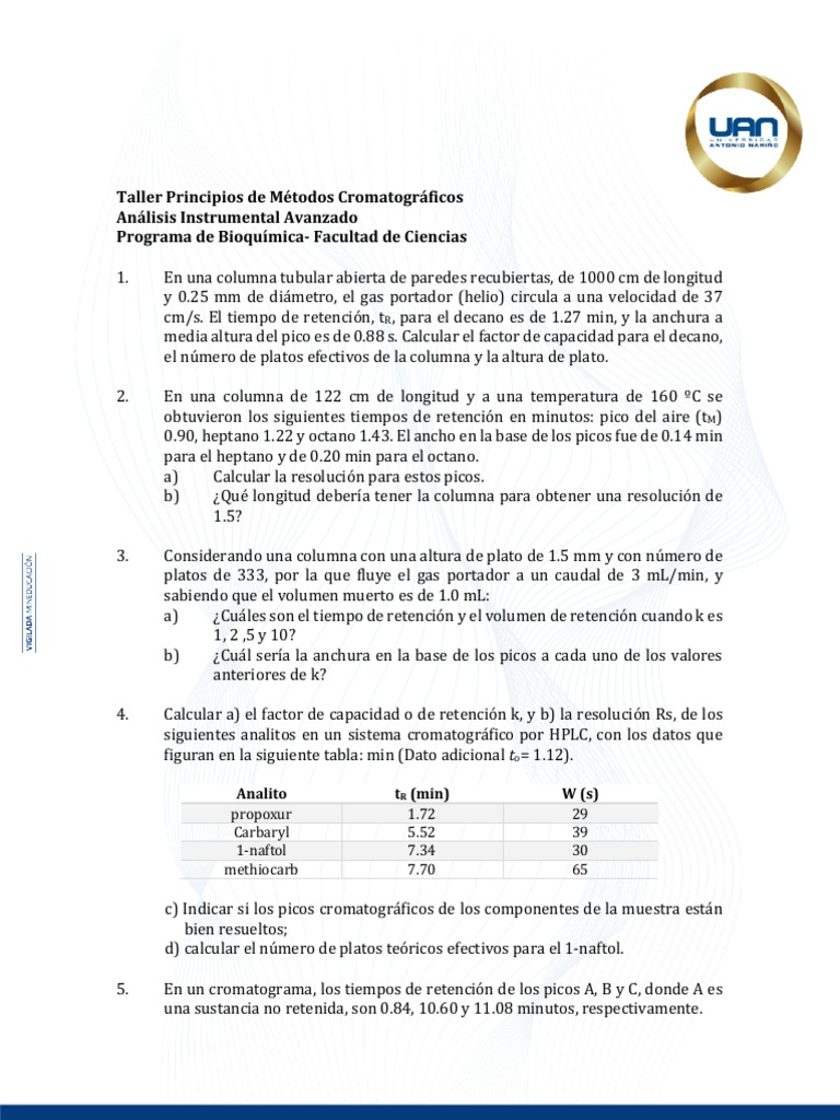 4. Calcular a) el factor de capacidad o de retención k, y b) la resolución Rs, de los