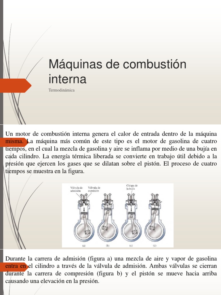 presión que ejercen los gases que se dilatan sobre el pistón. El proceso de cuatro