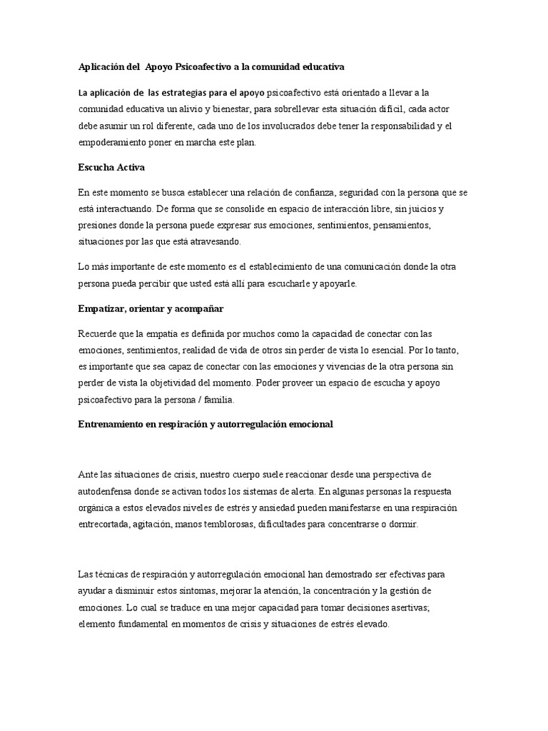 Aplicación del Apoyo Psicoafectivo a la comunidad educativa