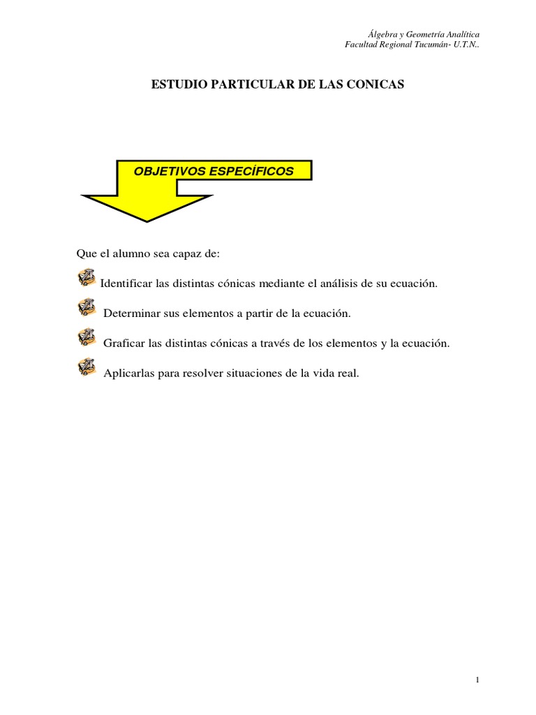 Cabe aclarar que sólo estudiaremos lugares geométricos cuyas ecuaciones sean polinómicas.