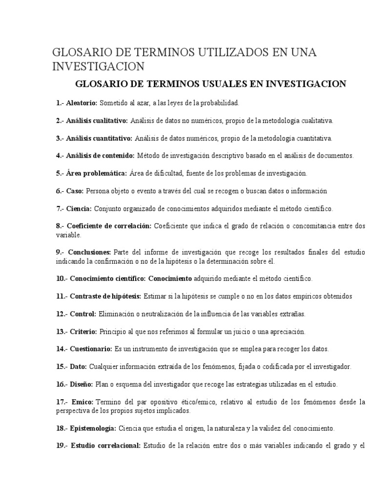 GLOSARIO DE TERMINOS USUALES EN INVESTIGACION