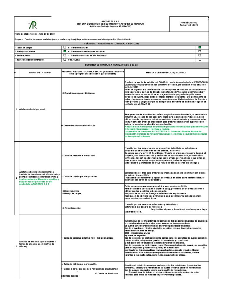 1. Caída de personal a distinto nivel - trabajo en alturas. acuerdo a la normatividad colombiana, las reglas internas de la empresa cliente y