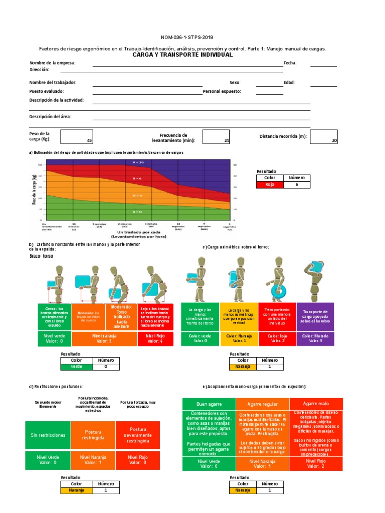 a) Estimación del riesgo de actividades que impliquen levantamiento/descenso de cargas