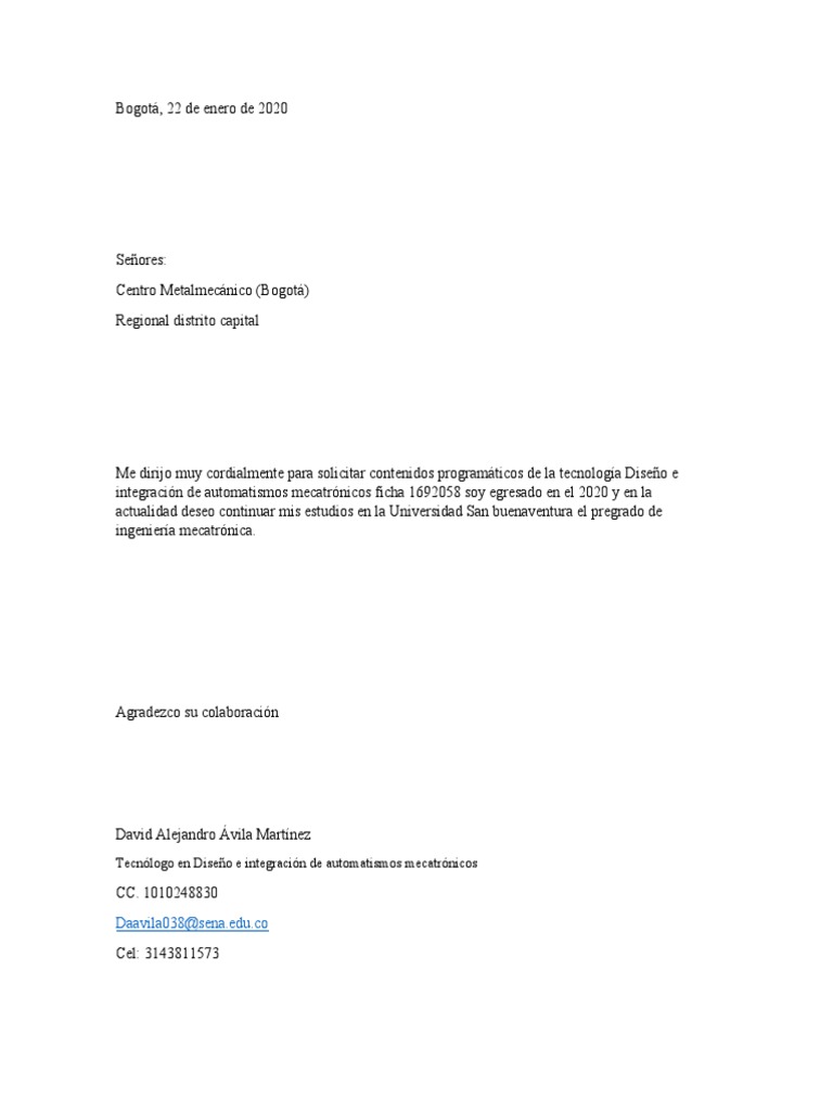Me dirijo muy cordialmente para solicitar contenidos programáticos de la tecnología Diseño e