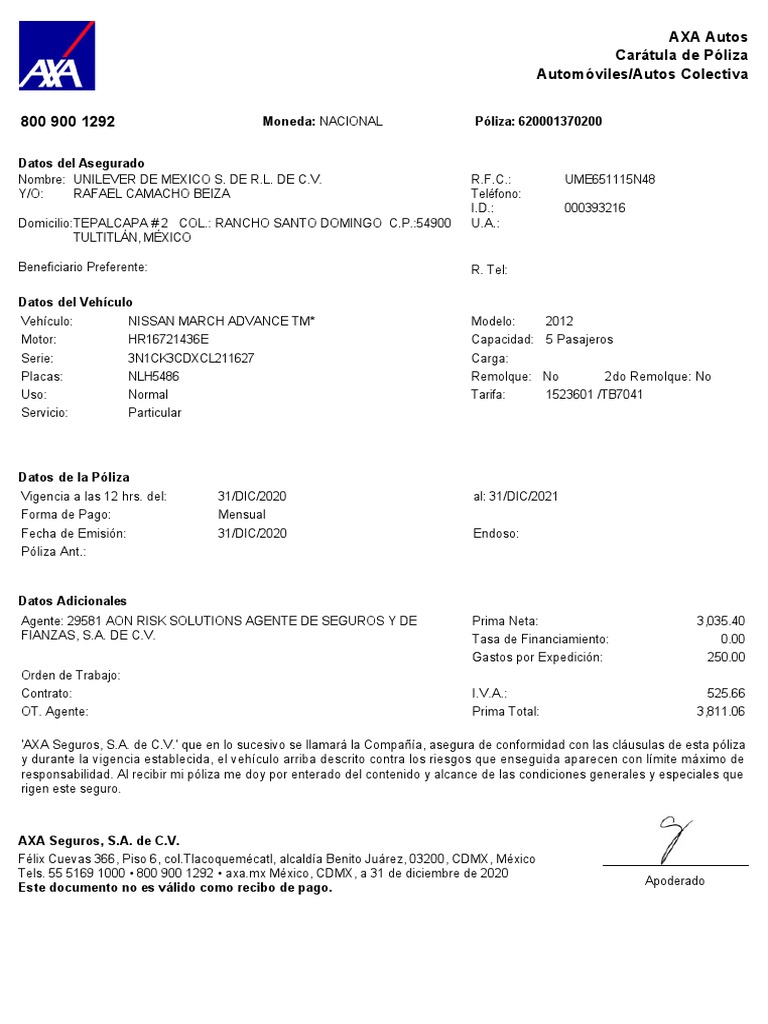 Tels. 55 5169 1000 • 800 900 1292 • axa.mx México, CDMX, a 31 de diciembre de 2020