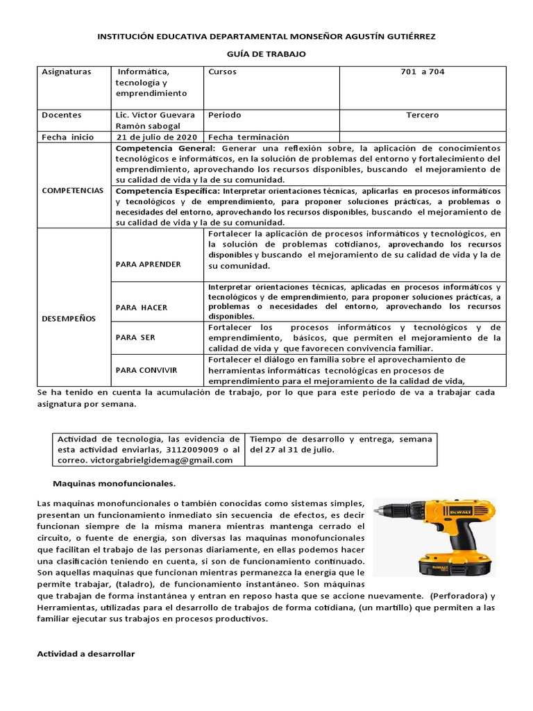 1. Según el texto, defina con sus propias palabras que entiende por maquina simple.