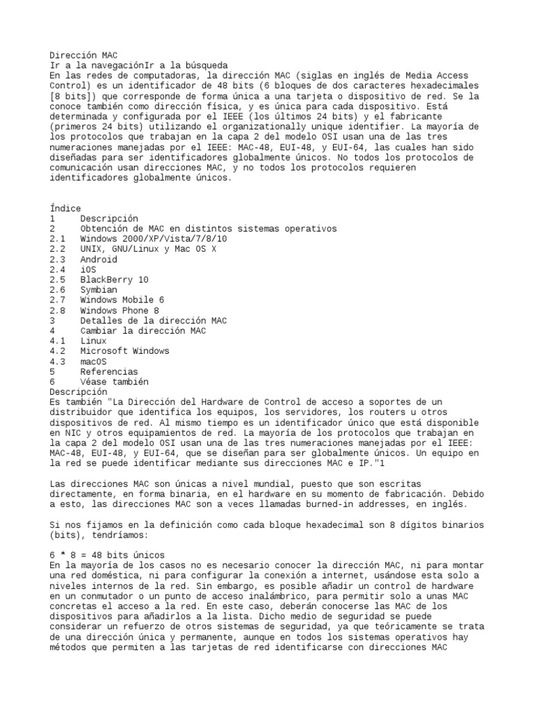 [8 bits]) que corresponde de forma única a una tarjeta o dispositivo de red. Se la