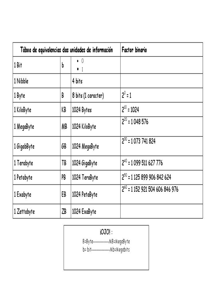 1 Byte B 8 bits (1 caracter) 20 = 1