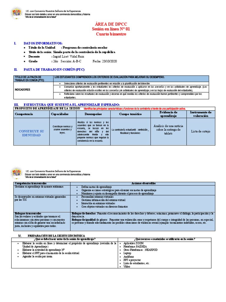 Elaborar la sesión en línea y determinar el propósito de aprendizaje (revisión de la Aplicativo ZOOM
