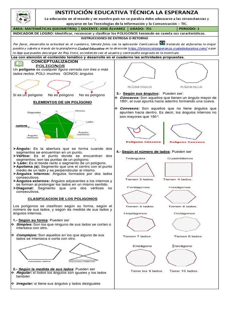 Los polígonos se clasifican según su forma, según el