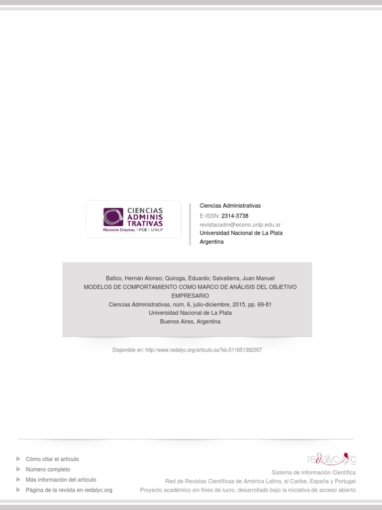 y traza relaciones con la definición de objetivo empresario, en términos de la maximización del