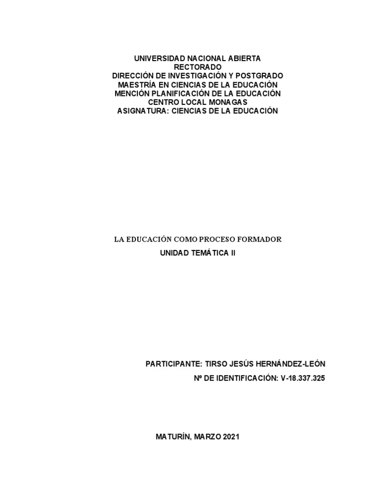 educación. Por ejemplo, la formación de la persona, por naturaleza, está determinada