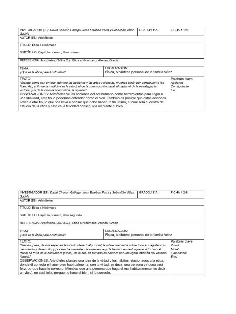 REFERENCIA: Aristóteles, (349 a.C.). Ética a Nicómaco, Atenas, Grecia.