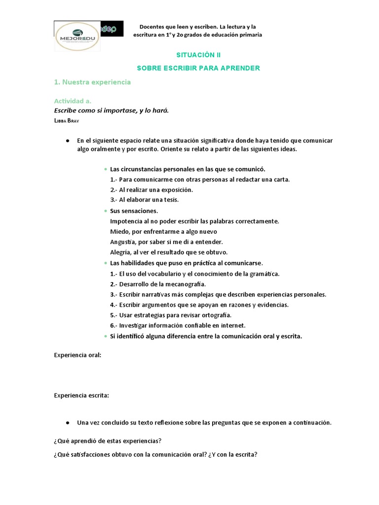 • Si identificó alguna diferencia entre la comunicación oral y escrita.