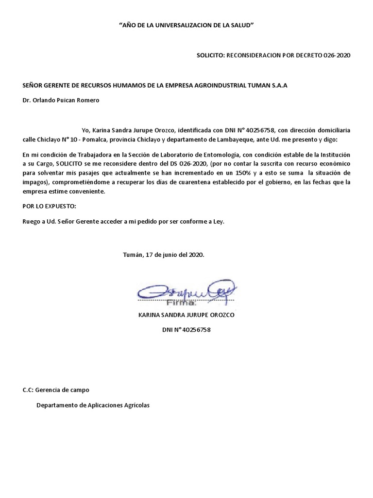 SOLICITO: RECONSIDERACION POR DECRETO 026-2020