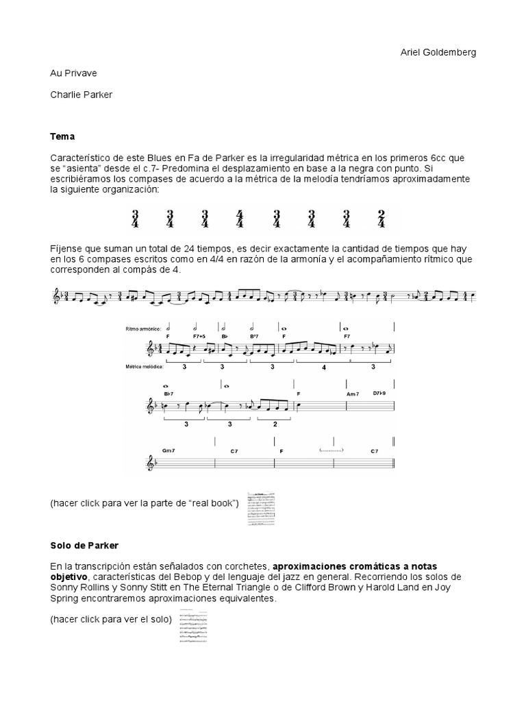 Característico de este Blues en Fa de Parker es la irregularidad métrica en los primeros 6cc que