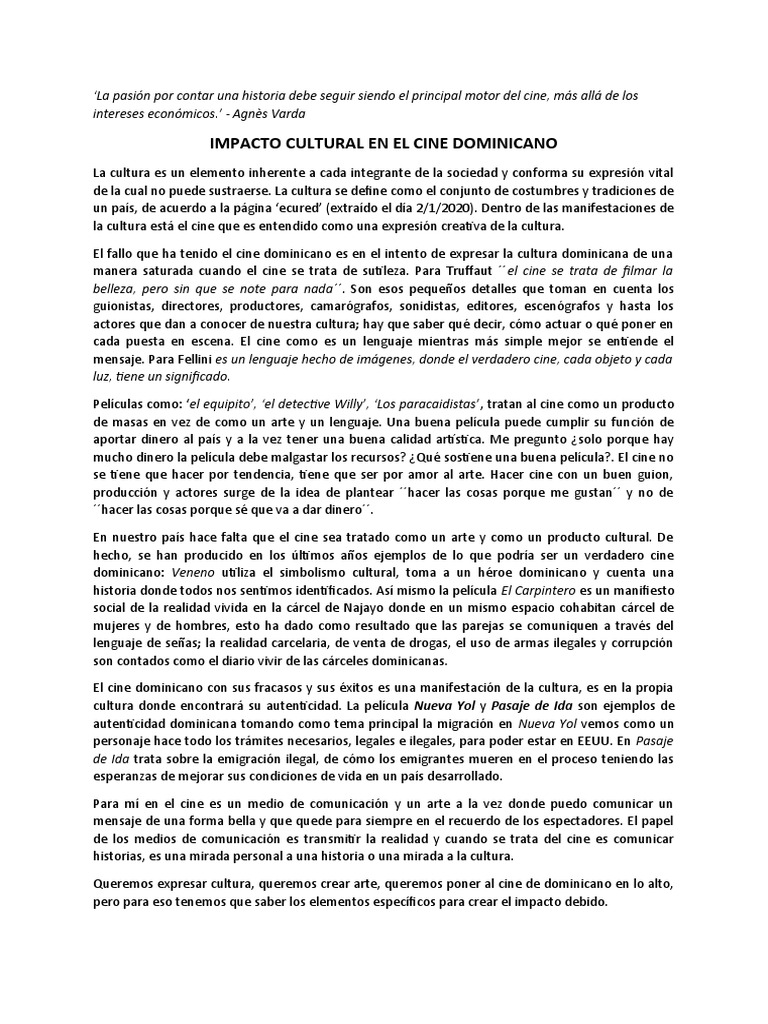IMPACTO CULTURAL EN EL CINE DOMINICANO