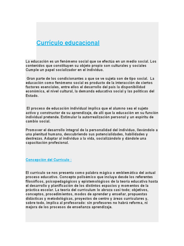 concreta o Currículo centrado en las asignaciones entendido el currículo