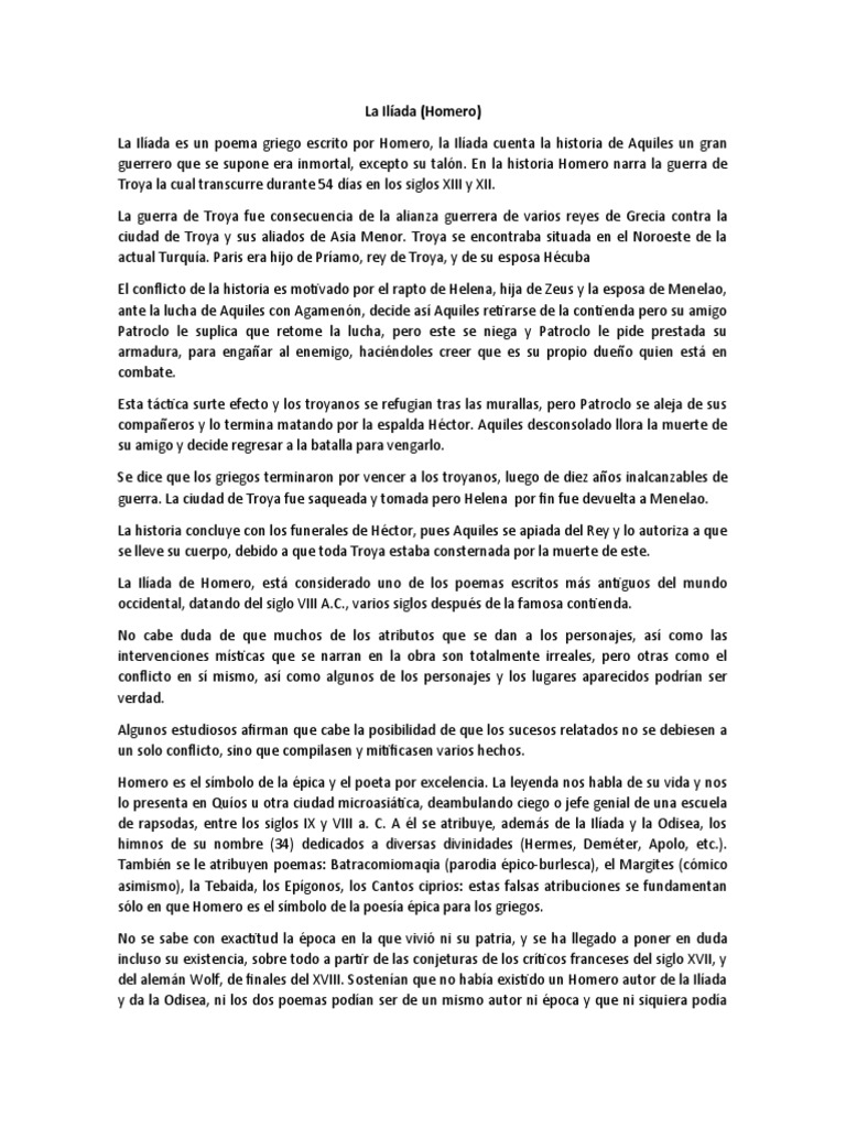 La Ilíada es un poema griego escrito por Homero, la Ilíada cuenta la historia de Aquiles un gran