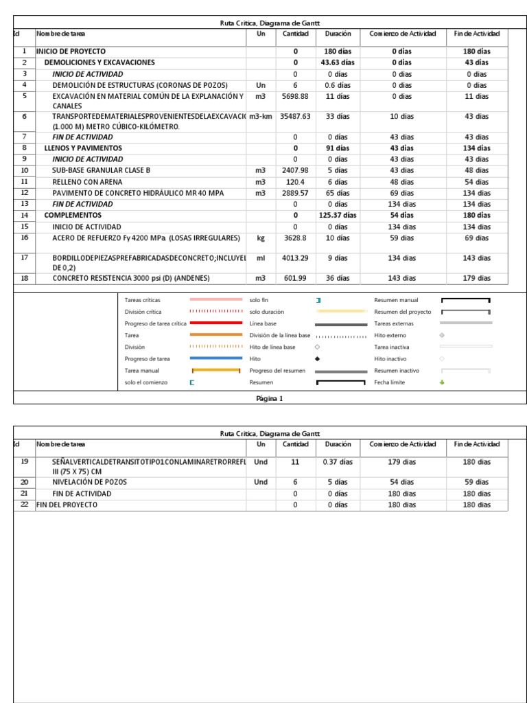 Id Nombre de tarea Un Cantidad Duración Comienzo de Actividad Fin de Actividad