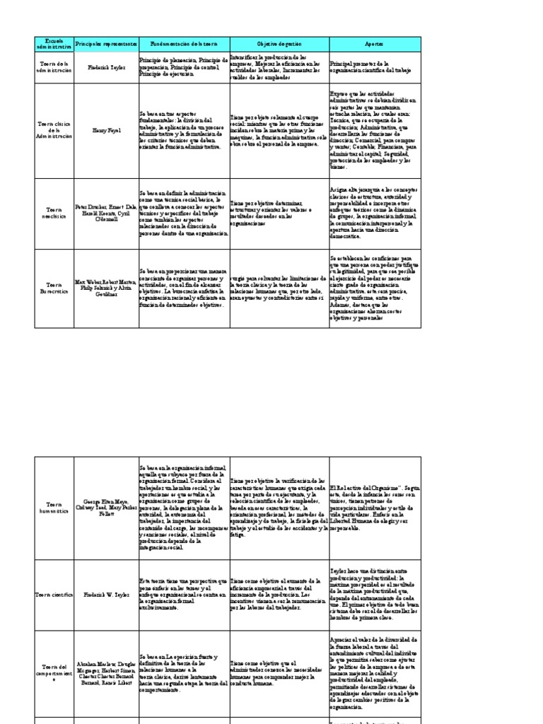 Principales representantes Fundamentación de la teoría Objetivo de gestión Aportes