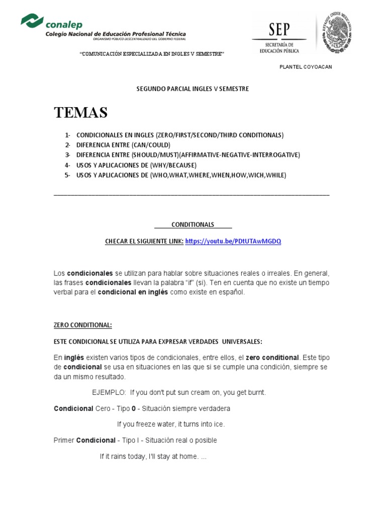 SEGUNDO PARCIAL INGLES V SEMESTRE