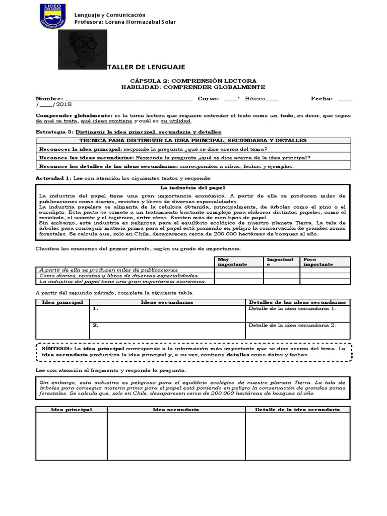 tema central, reconocer las ideas principales y secundarias, junto con construir organizadores gráficos que